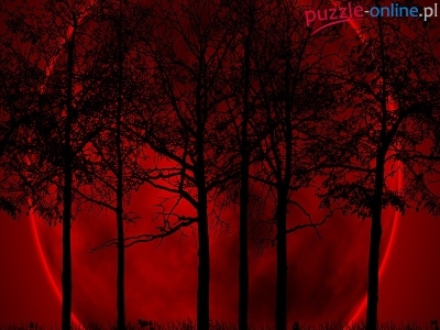 Puzzle Czerwony, Noc, Drzewa, Księżyc