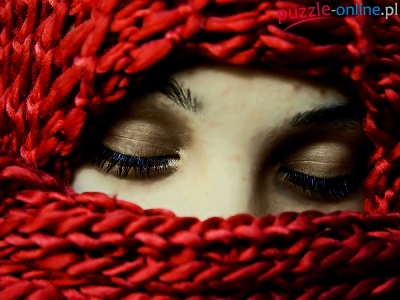 Puzzle Czerwony, Twarz, Kobiety, Szal
