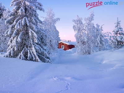 Drzewa, Zaspy, Ośnieżone, Śnieg, Wzgórze, Dom, Zima, Czerwony