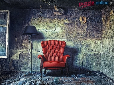 Puzzle Czerwony, Zaniedbany, Pokój, Fotel