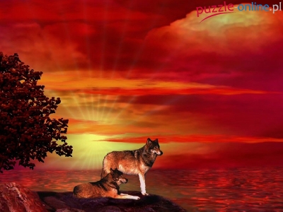 Puzzle Czerwony, Dwa, Wilki, Świt
