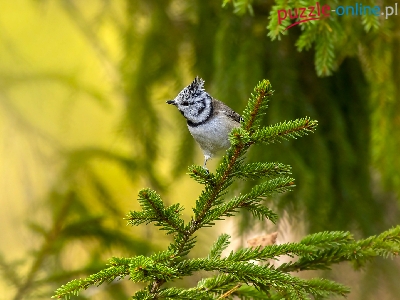 Puzzle Świerk, Gałązka, Sikora czubatka