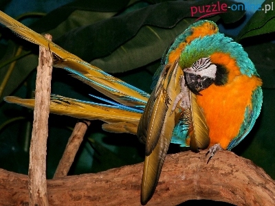 Czyszczenie, Żółto, Gałąź, Ara, Niebieska, Piór