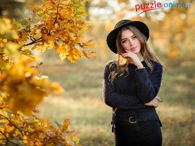 Dąb, Kobieta, Liście, Długowłosa, Kapelusz, Gałązki