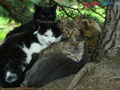 Dachowce, Drzewa, Przytulone, Koty, Pień