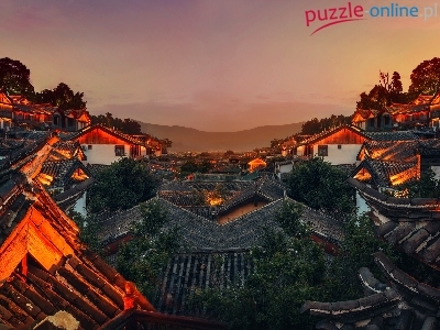 Dachy, Chiny, Oświetlone, Domy, Lijiang