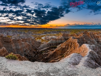 Skały, Stan Dakota Południowa, Chmury, Stany Zjednoczone, Park Narodowy Badlands, Niebo