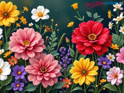 Kolorowe, Dalie, Kwiaty, AI, Grafika