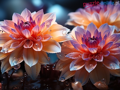 Kolorowe, Dalie, Kwiaty, Grafika, Krople