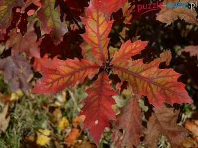 Puzzle Dębu, Jesienne, Liście, Czerwonego