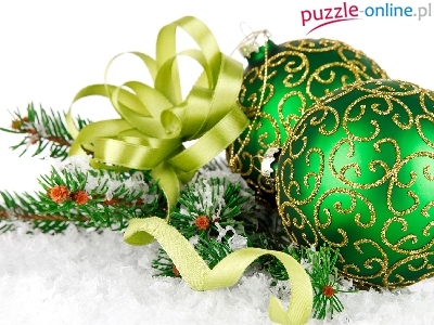 Puzzle Dekoracja, Zielone, Bombki, ÅšwiÄ…teczna
