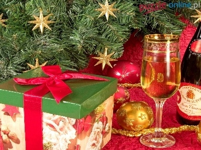 Dekoracja, Szampan, Choinka, Sylwester