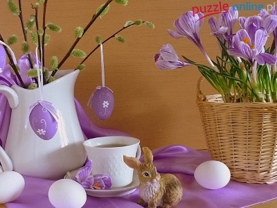 Puzzle Dekoracja, Fioletowe, Kwiaty, Wielkanocna