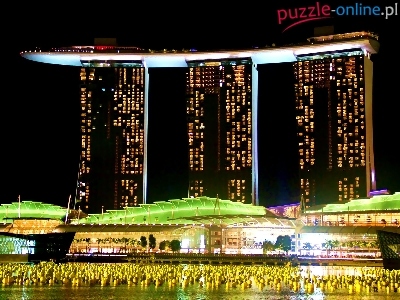Noc, Dekoracja, Singapur, Marina Bay Sands, Zielona