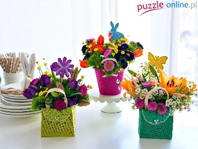 Puzzle Dekoracja, Stół, Okno, Kwiaty