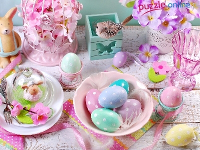 Puzzle Dekoracja, Wielkanoc, Pisanki, Stół