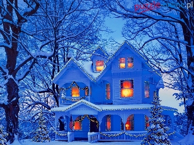Dekoracja, Drzewa, Zima, Świąteczna, Dom
