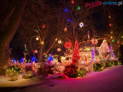 Dekoracje, Dom, Zima, Światełka, Świąteczne