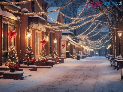 Domy, Ulica, Zima, Dekoracje, Boże Narodzenie, Latarnie