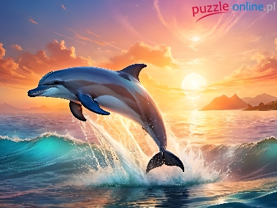 Zachód słońca, Niebo, Delfin, Chmury, Morze, Grafika
