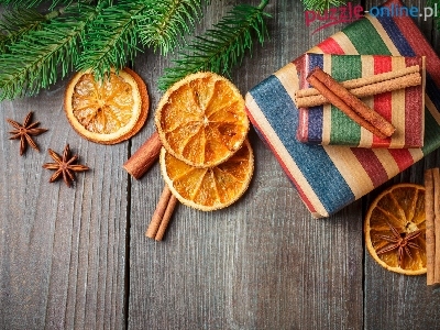 Prezenty, Kompozycja, Cynamon, Anyż, Gałązki, Pomarańczy, Świąteczna, Plasterki, Deski