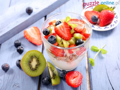 Borówki, Owoce, Kiwi, Deski, Pucharek, Deser, Truskawki