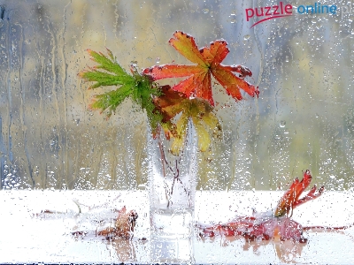 Deszcz, Wazon, Jesień, Liście, Krople