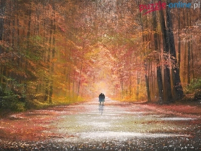 Deszcz, Las, Spacerowiczów, Obraz, Park, Para