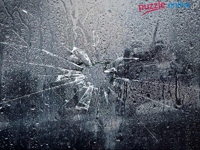Deszczu, Ekran, Spływające, Krople, Pęknięty