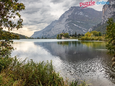 Jezioro, Włochy, Lago Di Toblino, Góry, Drzewa