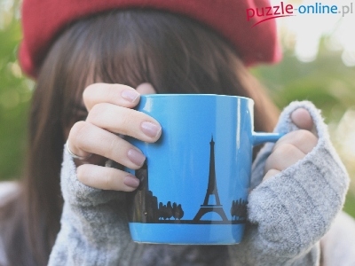 Dłonie, Wieża Eiffla, Dziewczyna, Beret, Kubek