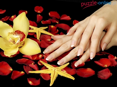 Puzzle Płatki, Dłonie, Kwiat