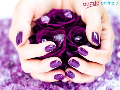 Puzzle Purpurowe, Dłonie, Róże