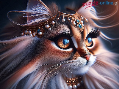 Grafika, Kot, Długowłosy, Długie, Biżuteria, Rzęsy