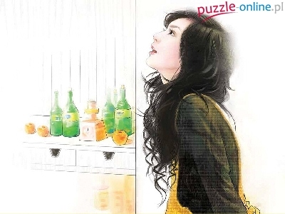 Puzzle Zamyślona, Długowłosa, Kobieta