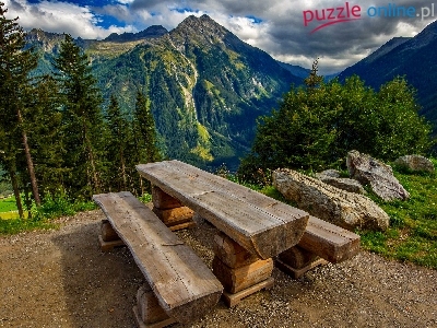 Puzzle Dolina, Ławka, Góry, Krajobraz