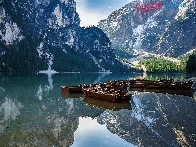 Dolomity, Łódki, Włochy, Góry, Jezioro Braies