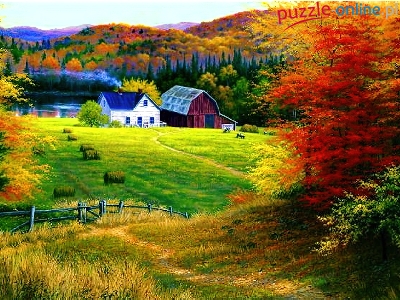 Puzzle Dom, Pole, Łąka, Jesień