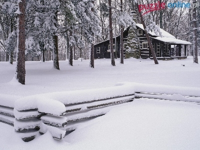 Dom, Śniegiem, Las, Drewniany, Pokryte