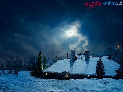 Puzzle Dom, Góry, Drzewa, Zima