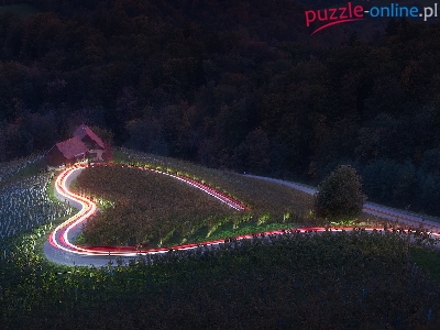 Wieś Spicnik, Drzewa, Gmina Kungota, Słowenia, Serce, Plantacja, Winnica, Dom, Droga, Oświetlona