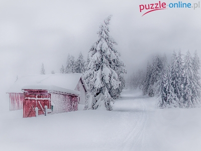 Puzzle Dom, Zima, Drzewa, Świerki