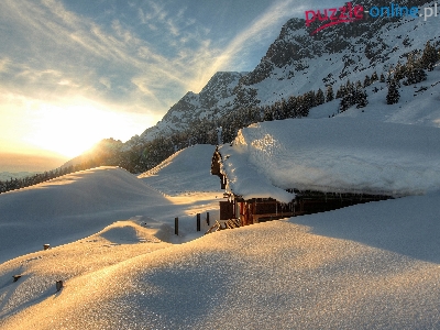 Dom, Dach, Zima, Góry, Zaśnieżony
