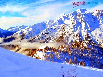 Puzzle Dom, Zima, Góry, Zbocze