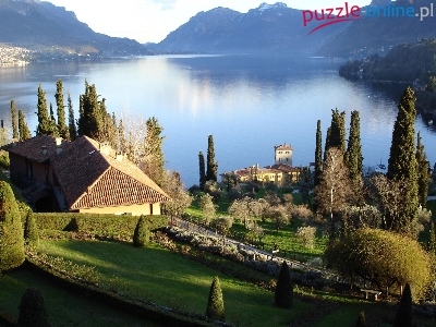 Puzzle Dom, Góry, Jezioro, Ogród