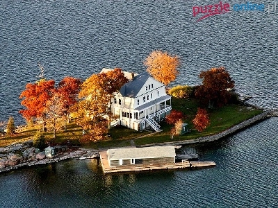 Dom, Wyspie, Jesień, Jezioro, Na
