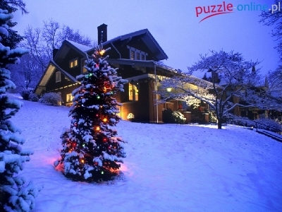 Dom, Choinka, Zima, Boże Narodzenie, Oświetlona