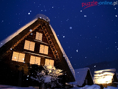 Puzzle Śnieg, Dom, Niebo