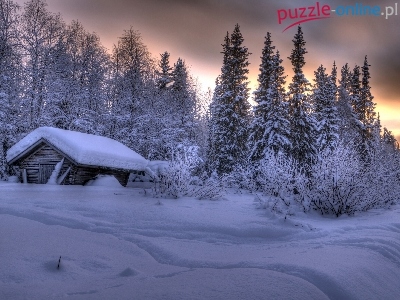Puzzle Śnieg, Zima, Dom, Drzewa