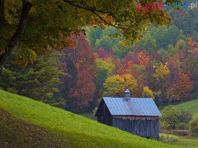 Domek, Kolorowe, Jesień, Lasy, Drzewa, Góry